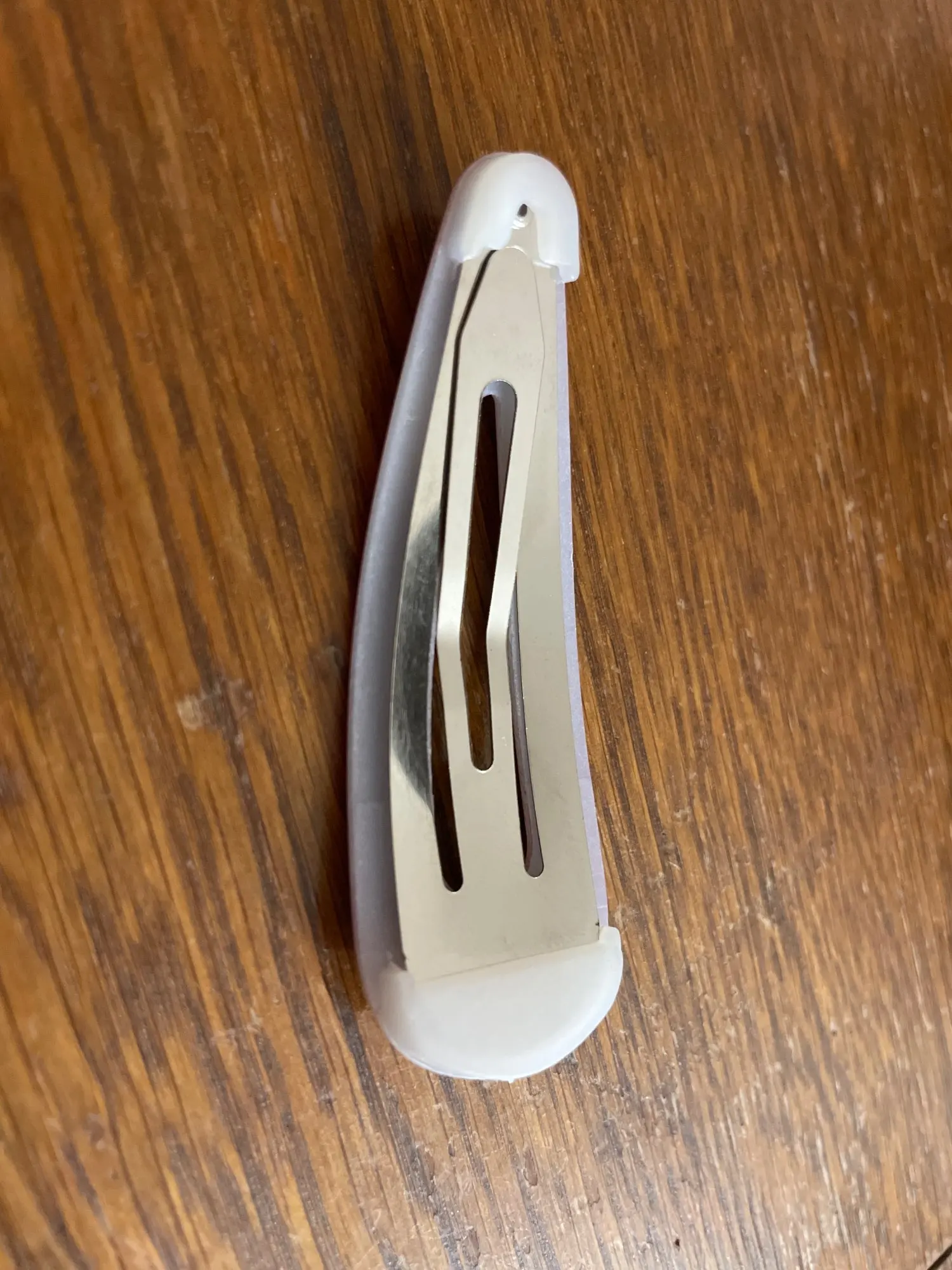 Le métal utilisé dans ces barrettes est un alliage flexible à mémoire de forme — il se plie sans se casser et retrouve sa position initiale. Le revêtement protecteur qui recouvre la surface imprimée protège le motif des frottements répétés (sac, poche de tablier, boîte à accessoires) sans s’écailler en usage normal. Les extrémités sont arrondies et polies — aucun bord tranchant, aucune aspérité qui accrocherait les cheveux à l’ouverture ou à la fermeture.