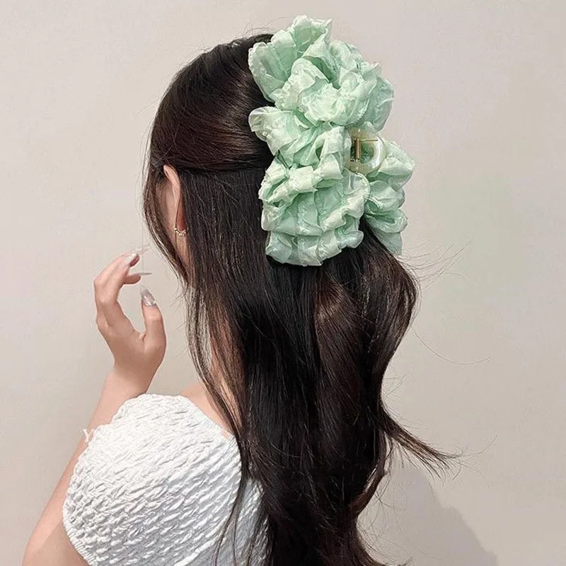 Apportez une touche de poésie et d’élégance à votre style avec notre grande pince à cheveux en mousseline.