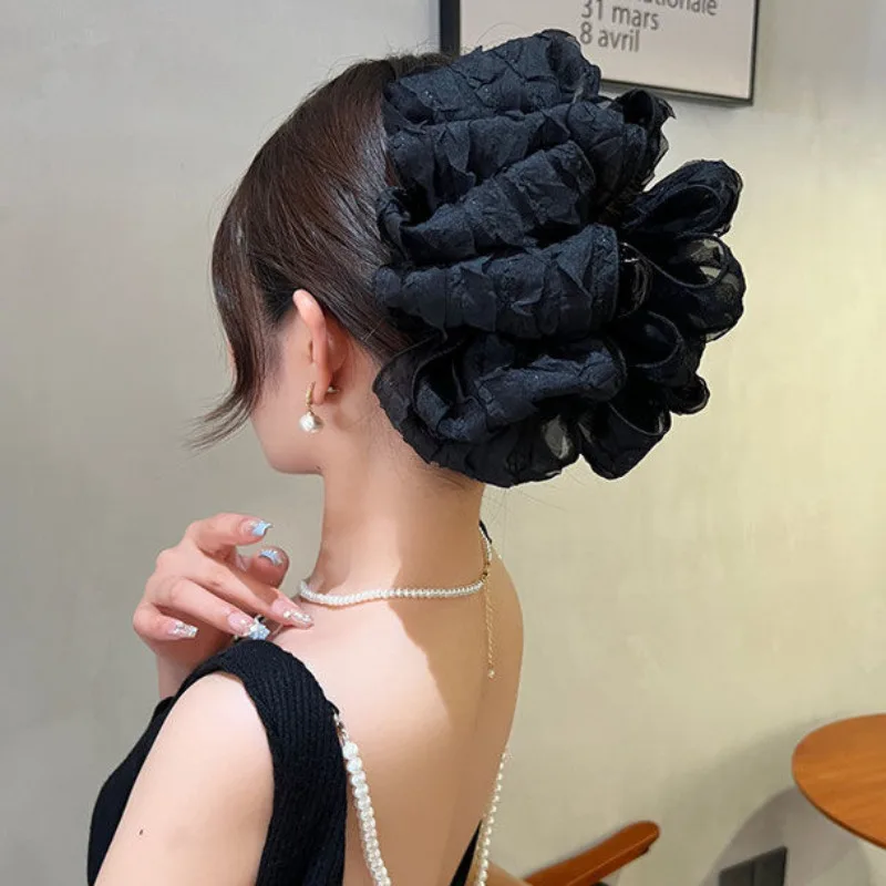 Grande pince à cheveux en mousseline – effet fleur volumineuse & chic
