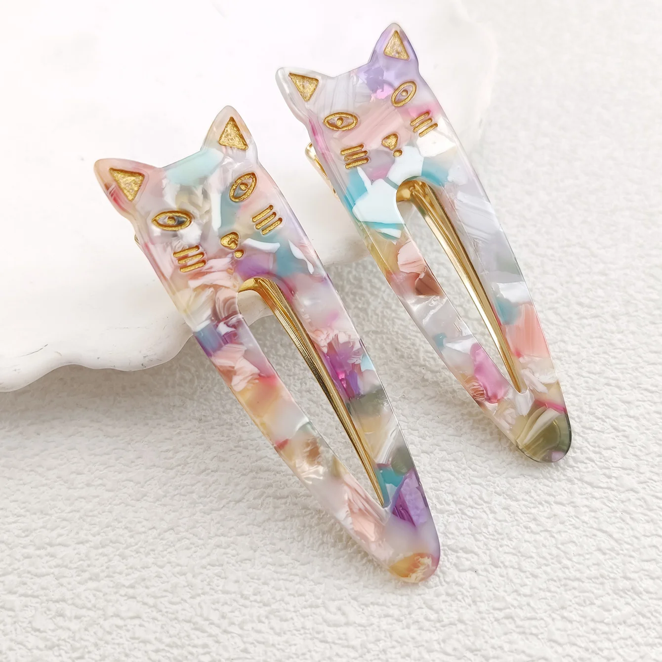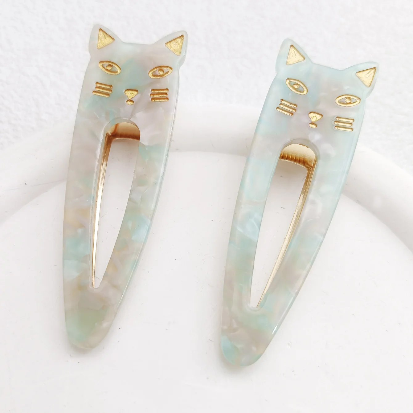 Lot de 2 barrettes chat en acétate – pinces cheveux chic & mignonnes