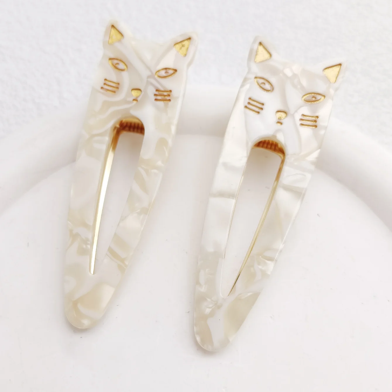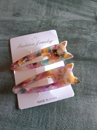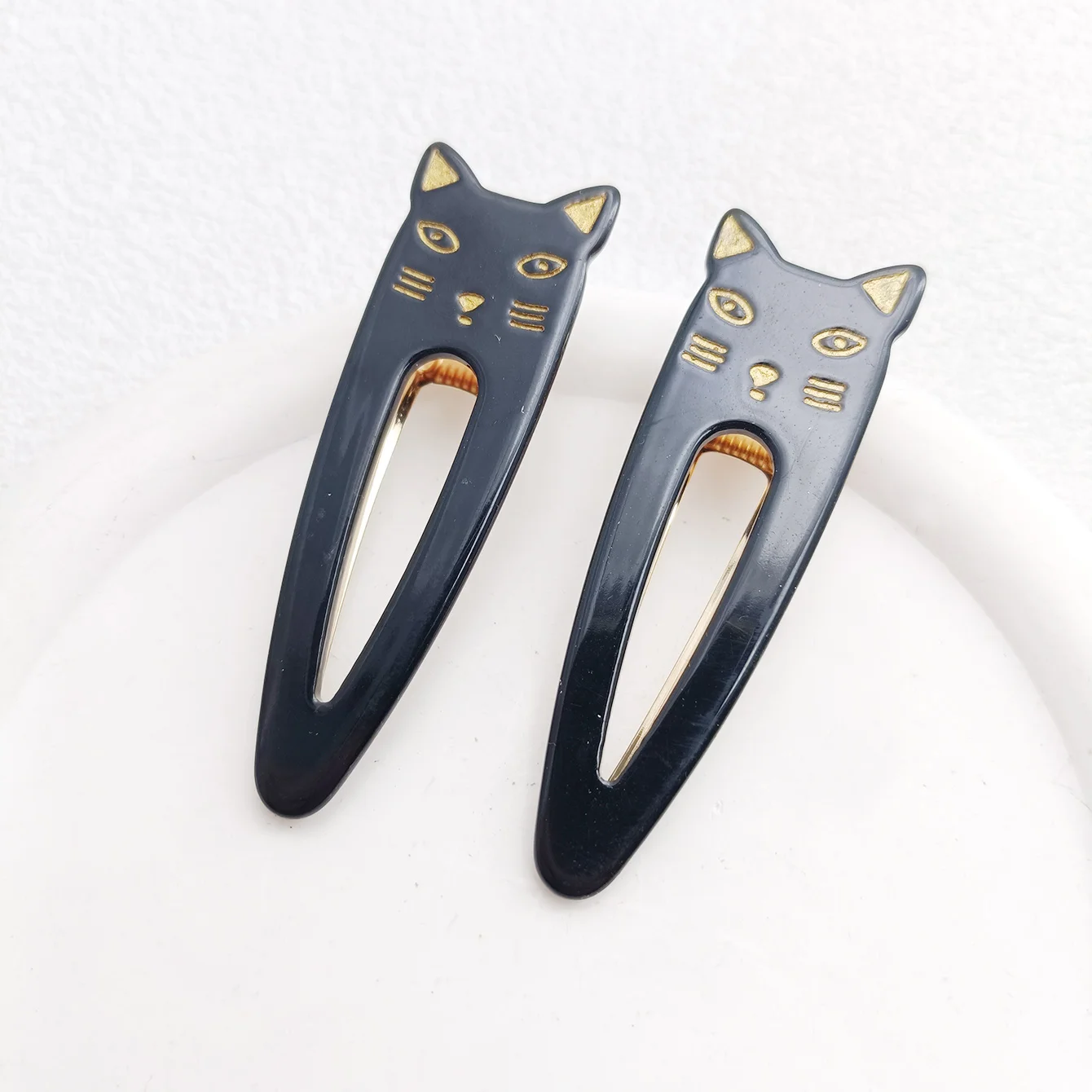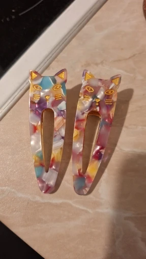 Ajoutez une touche de fantaisie élégante à votre coiffure avec notre lot de 2 barrettes chat en acétate.