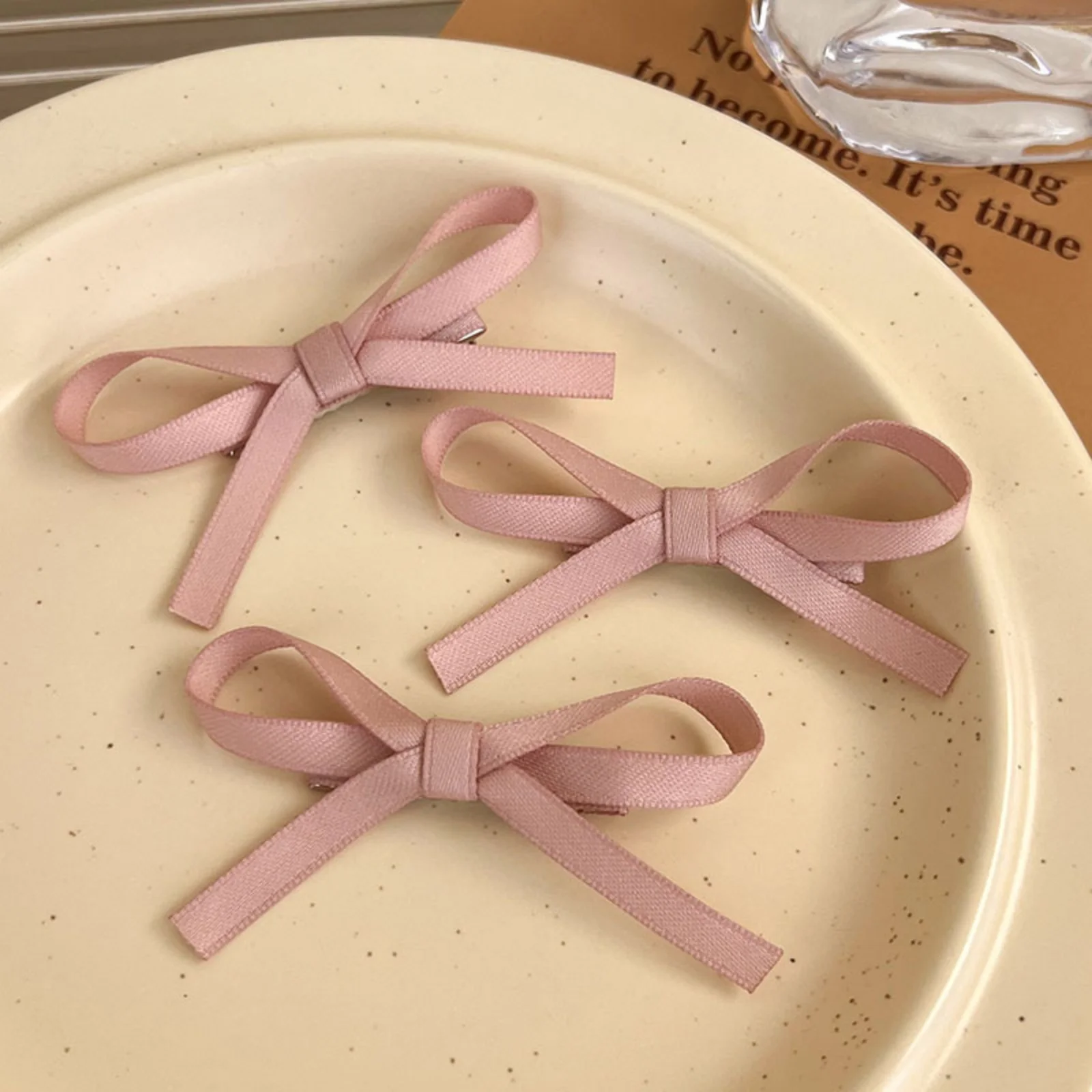 Lot 3 barrettes nœuds ruban – accessoires coiffure tresse princesse