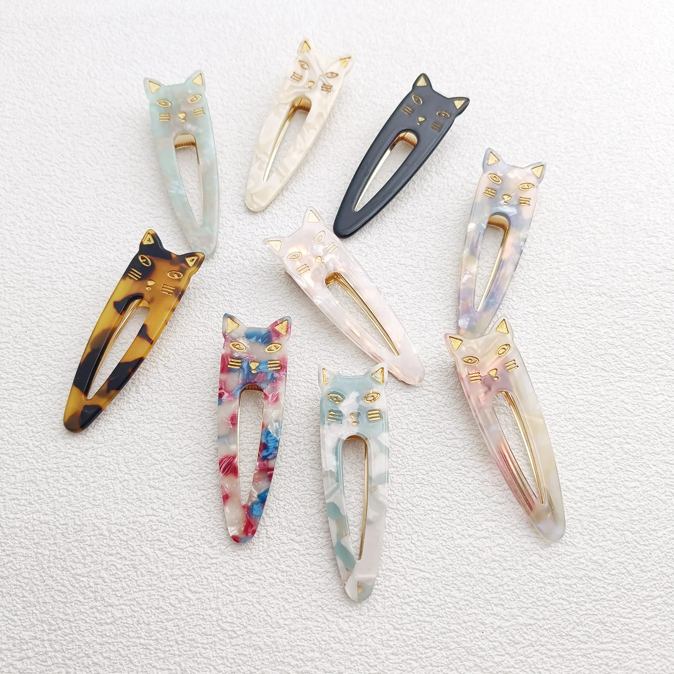 Lot de 2 barrettes chat en acétate – pinces à cheveux mignonnes & chic