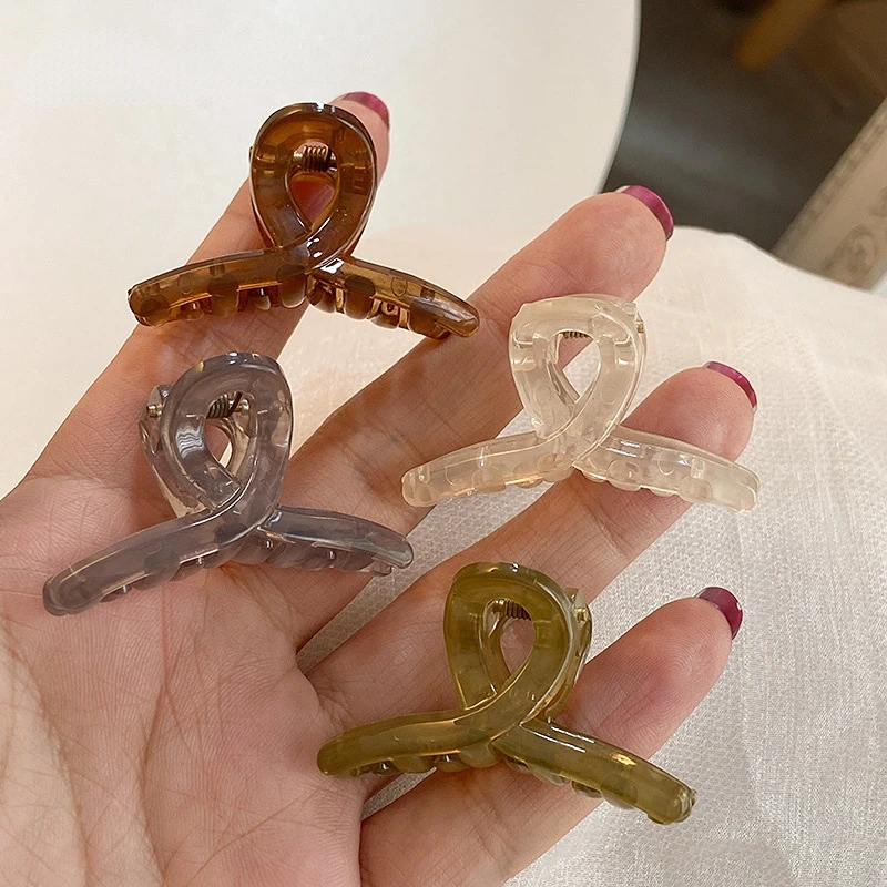Lot de 4 mini pinces crabe translucides – design croisé demi-queue