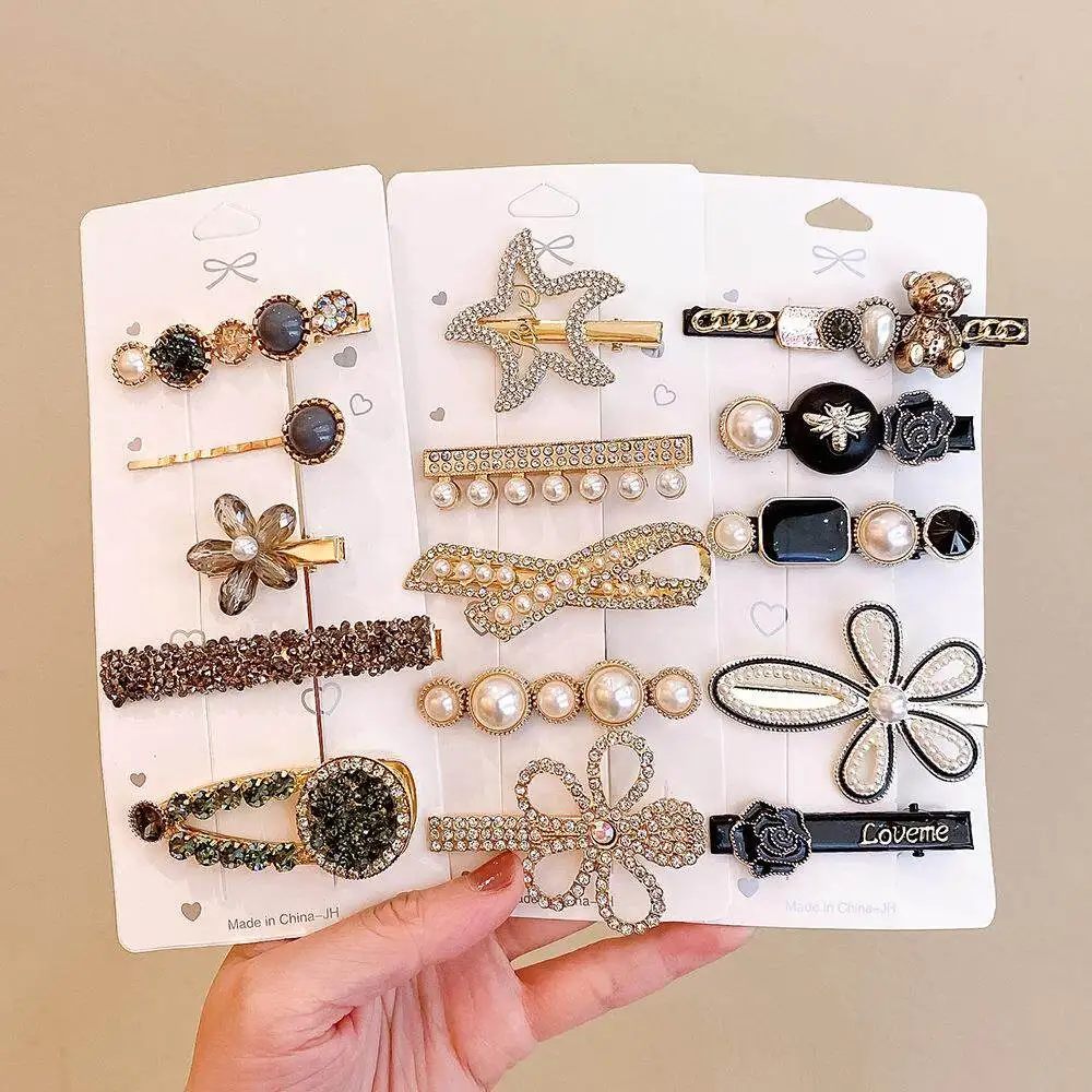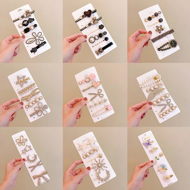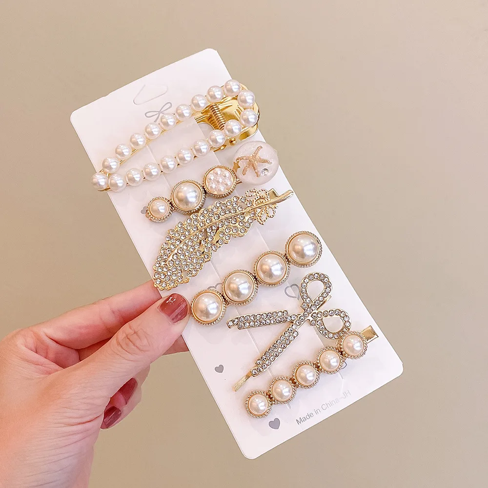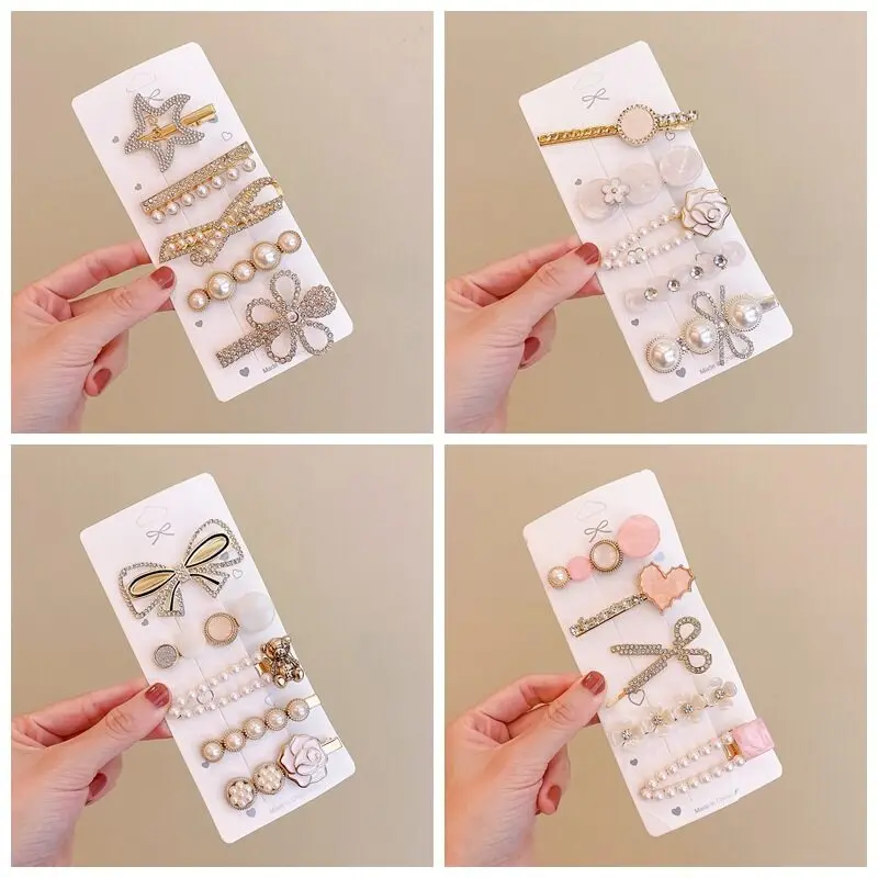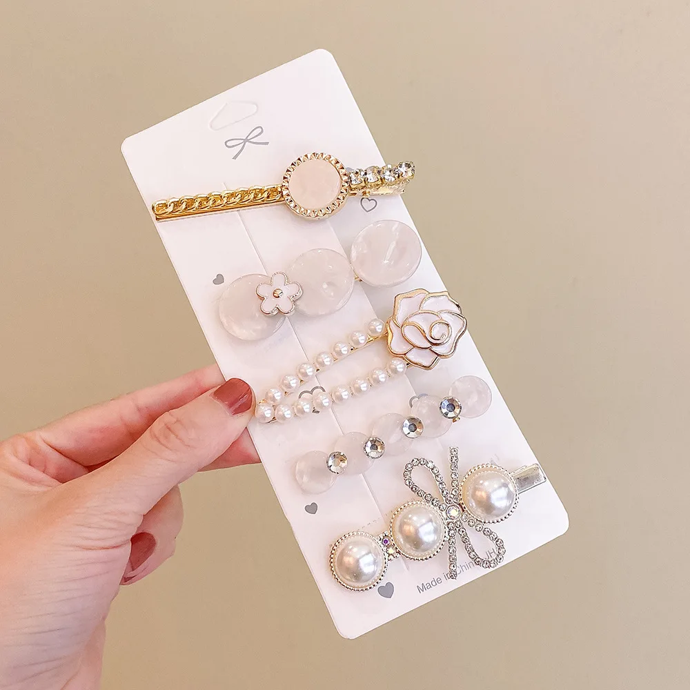Lot de 6 barrettes cheveux strass et perles – style coréen élégant