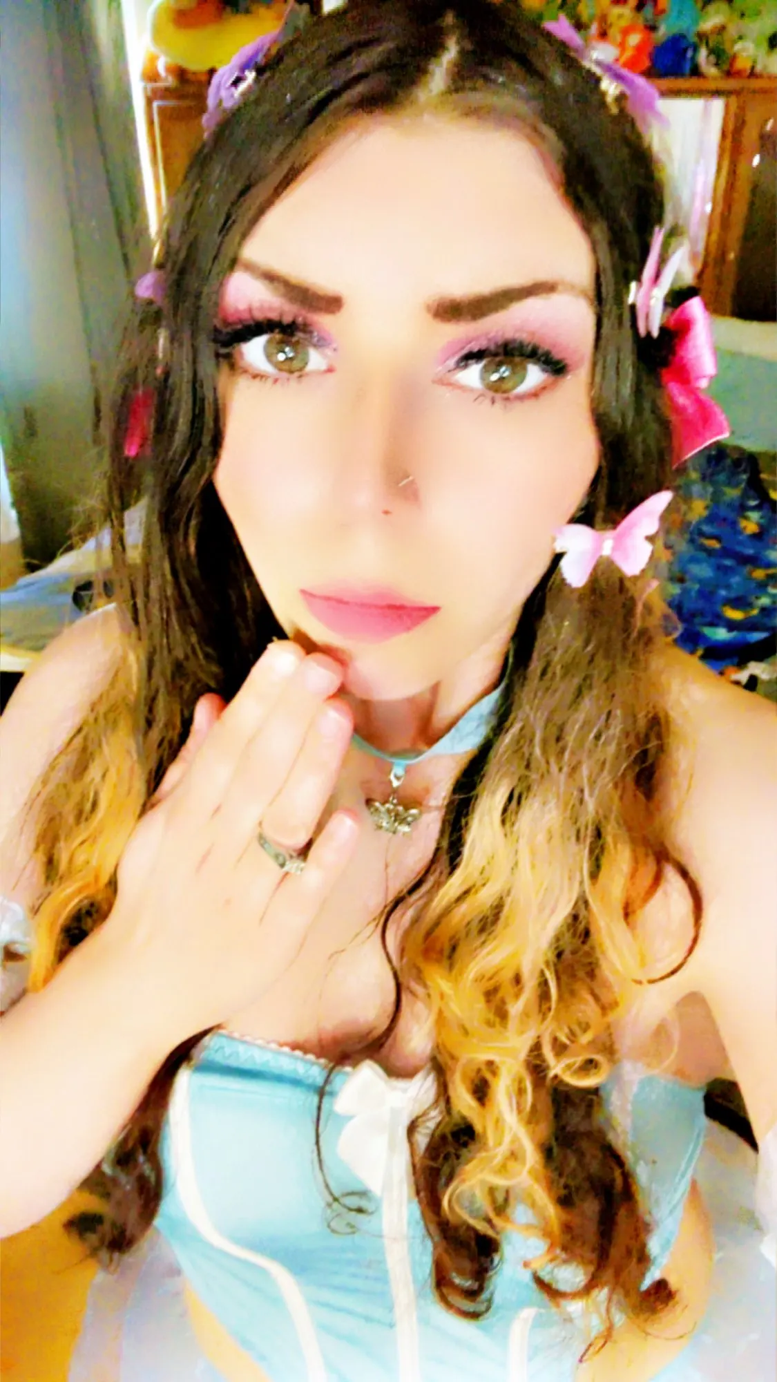 Le double niveau d’ailes donne un effet de volume et de mouvement : au moindre souffle de vent ou mouvement de tête, le papillon semble prêt à s’envoler. Les dégradés de couleurs, du bleu céleste au violet mystique en passant par le rose poudré, renforcent cet aspect réaliste et vivant.