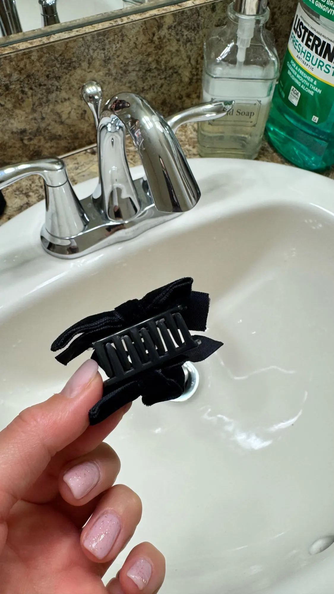 - Lot de 2 — une pour le sac, une pour la salle de bain. Ou les deux dans les cheveux en même temps.