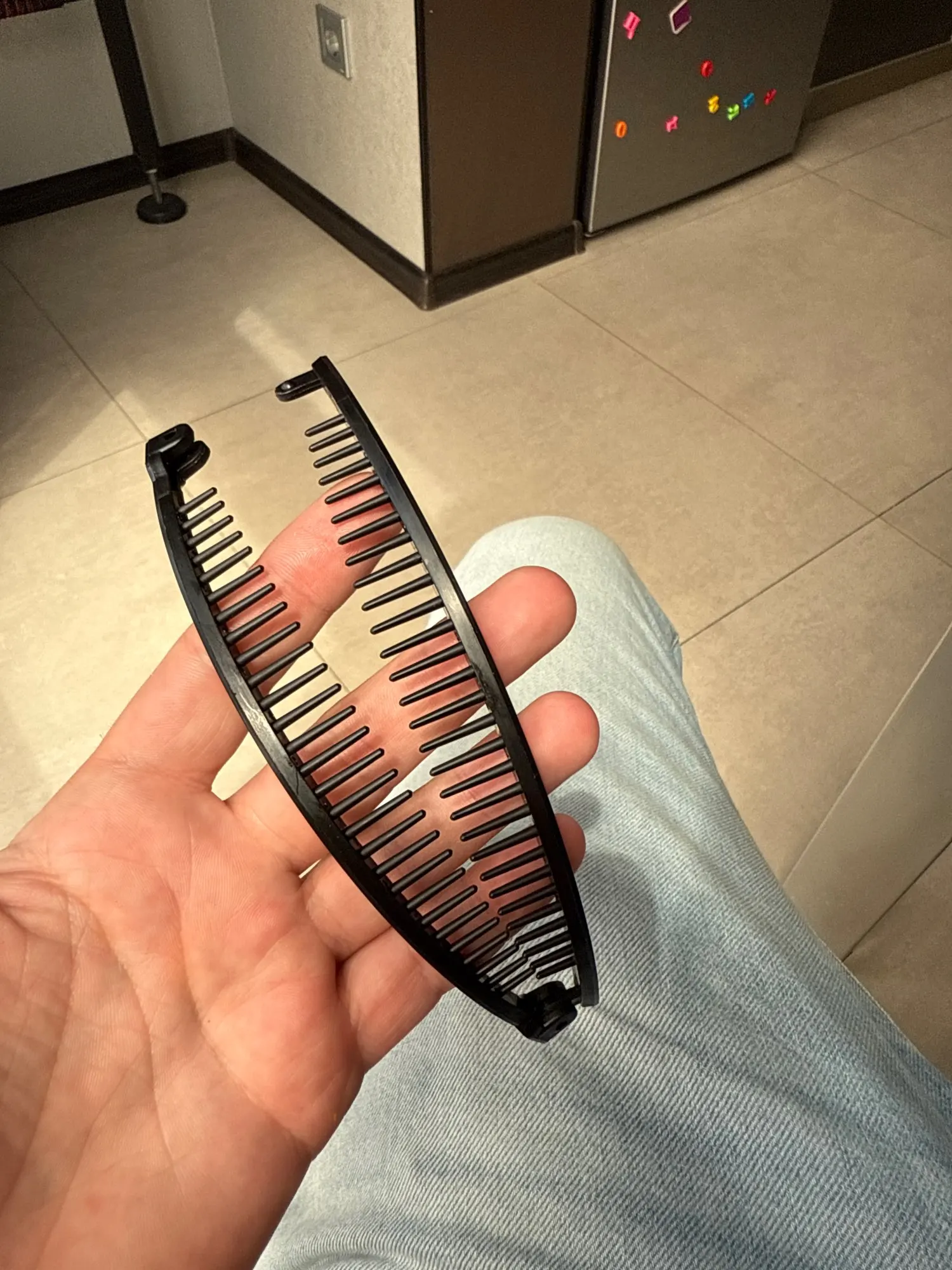 Cette pince banane d’enfer est vraiment très agréable sur mes cheveux bouclés je l’adore et la recommande elle s’adapte parfaitement à toutes les tenues que je porte merci