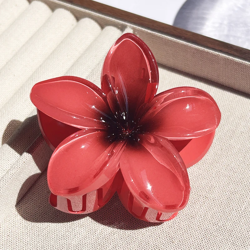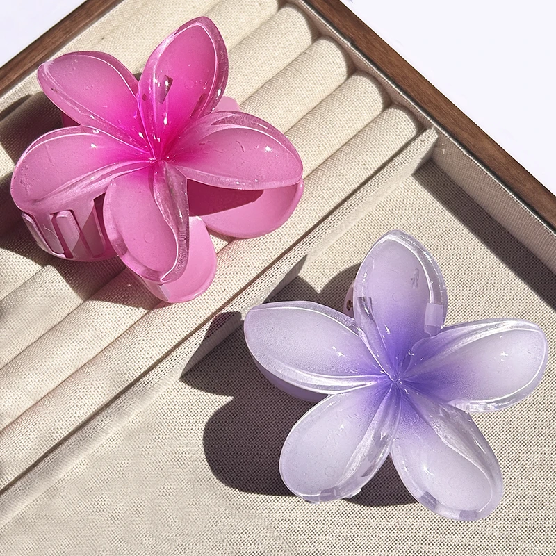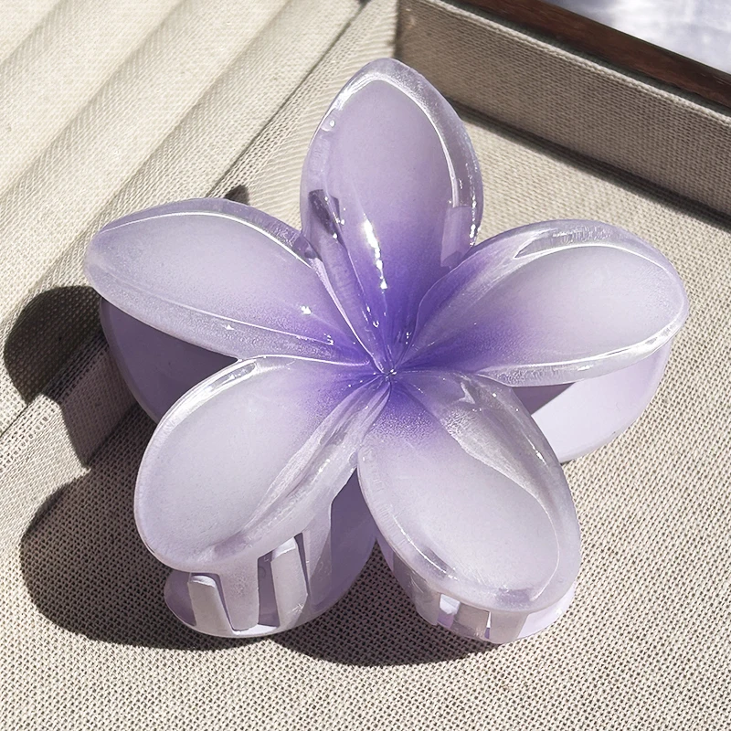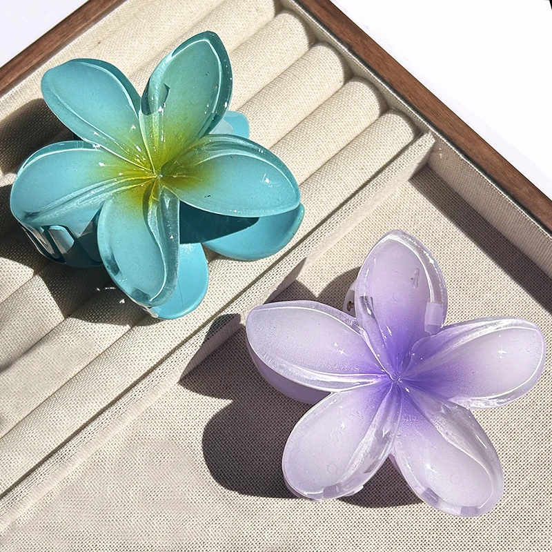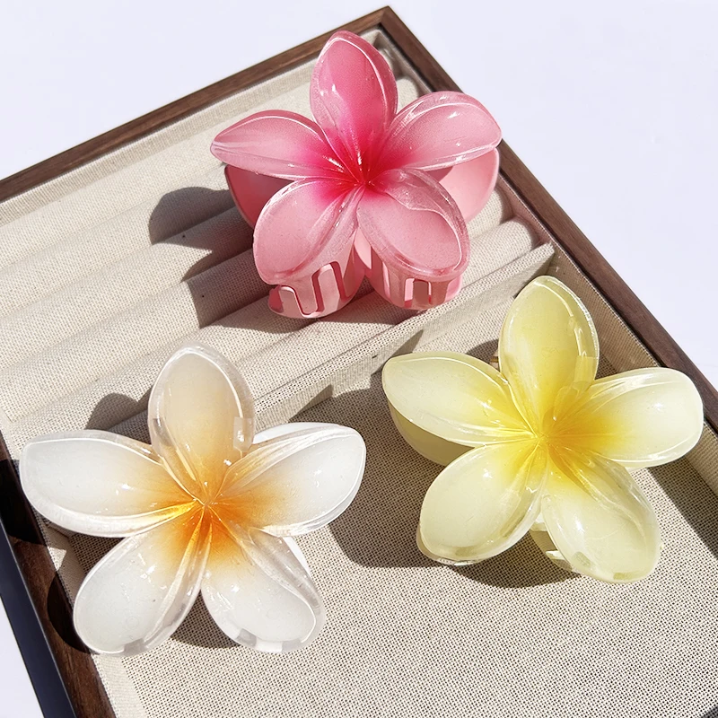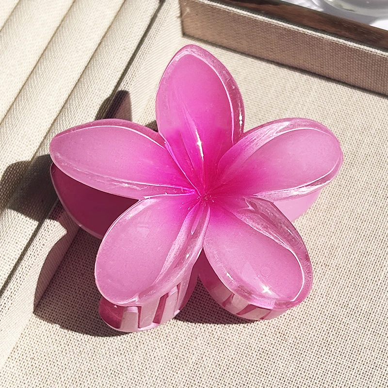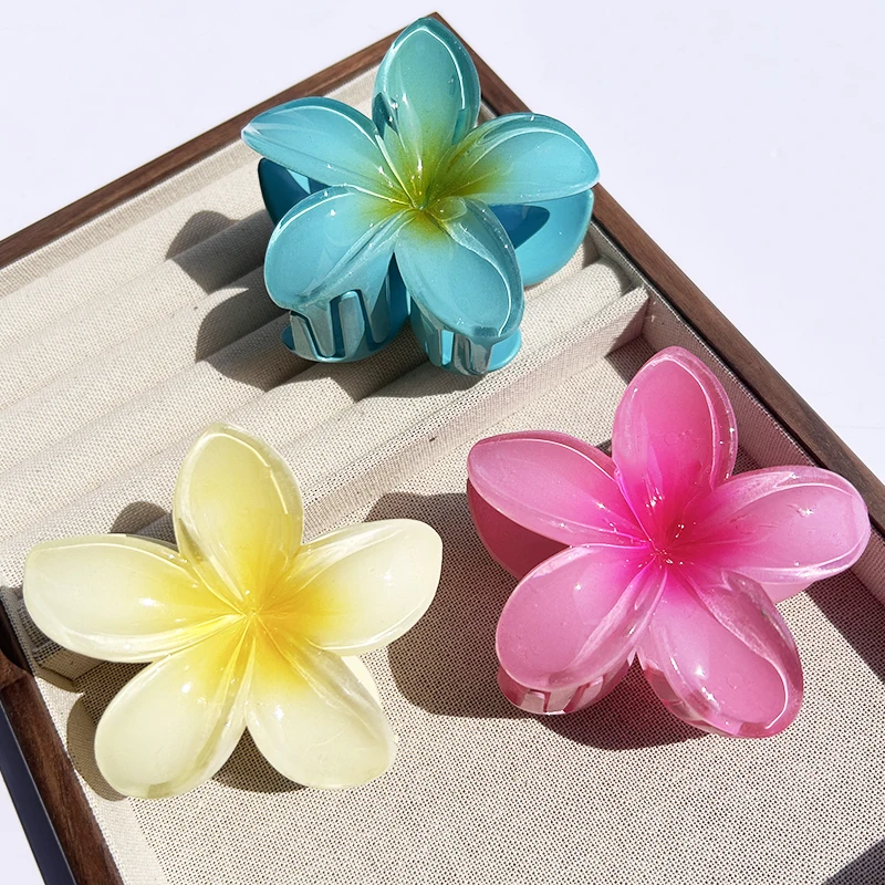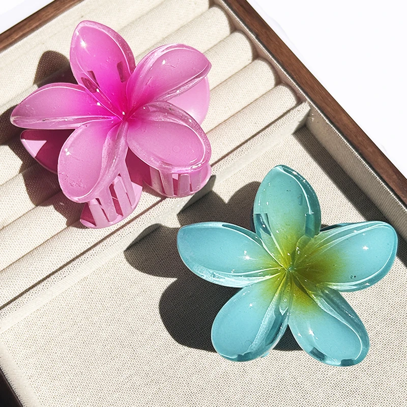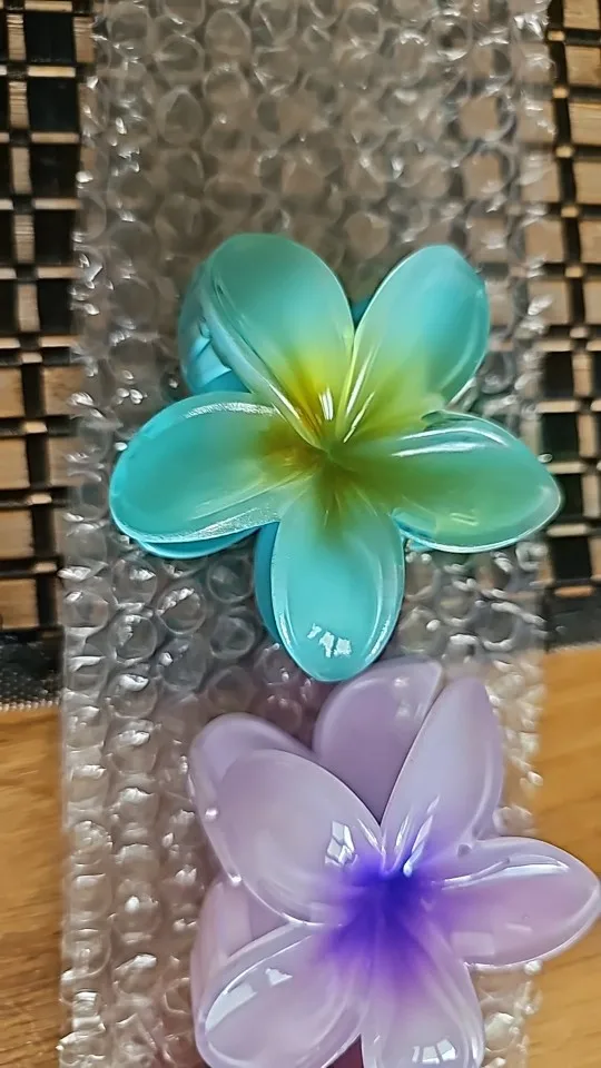 Inspirée par la beauté des îles polynésiennes, cette pince reprend la forme emblématique de la fleur de Plumeria (aussi appelée Frangipanier). Que vous choisissiez le modèle aux tons rosés, bleutés ou le classique cœur jaune, cet accessoire apporte instantanément une touche d’exotisme à votre style.