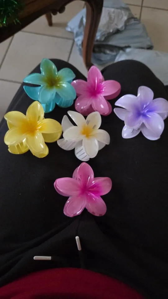 Emportez un peu de soleil partout avec vous. Avec ses pétales aux courbes douces et ses couleurs vibrantes, notre pince cheveux fleur Tahiti est l’accessoire phare de la saison pour une coiffure fraîche et décontractée.