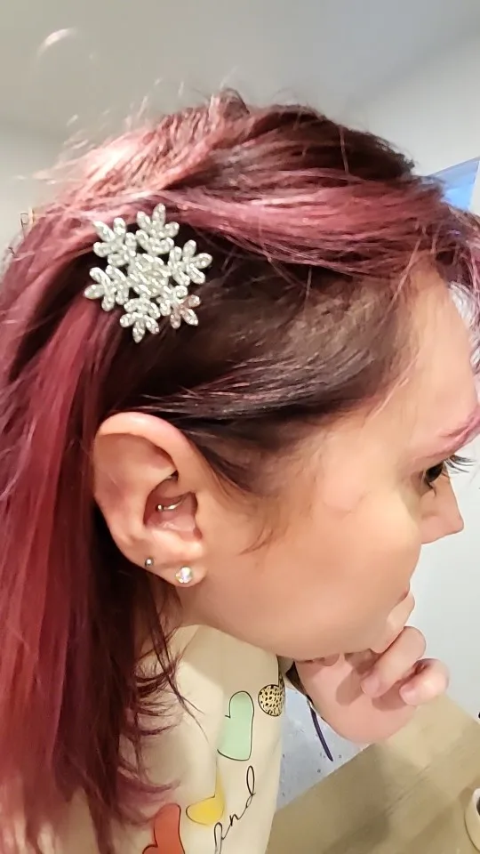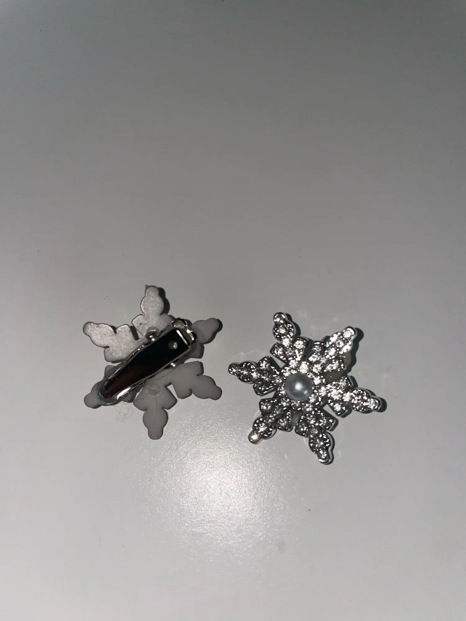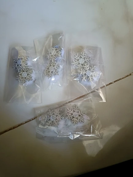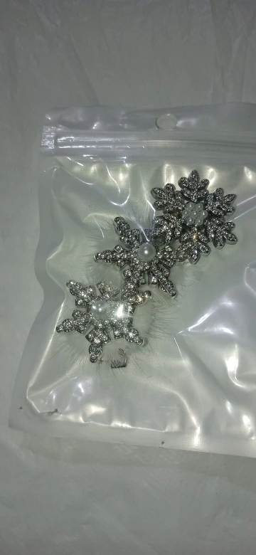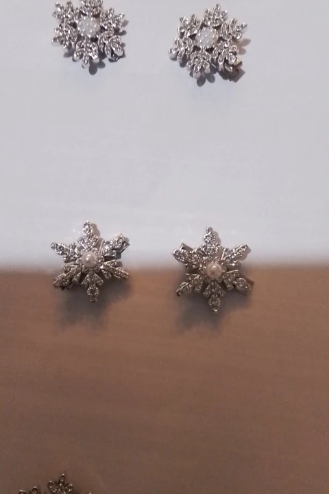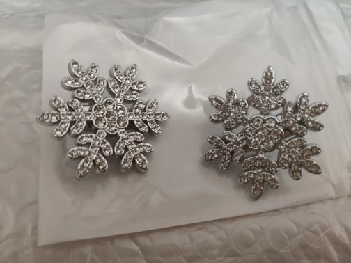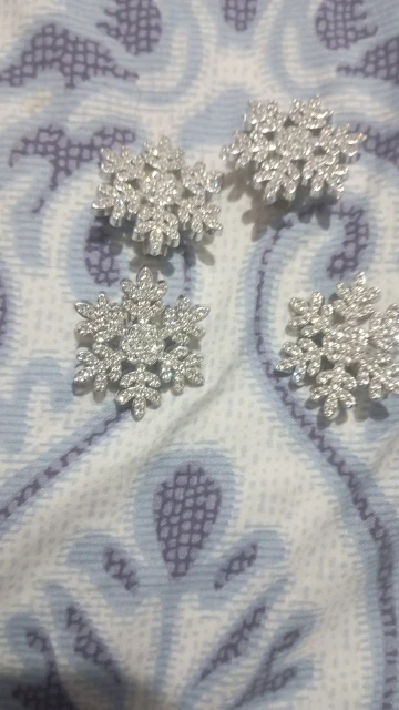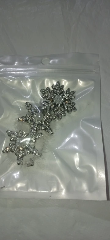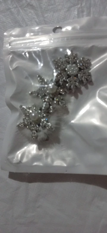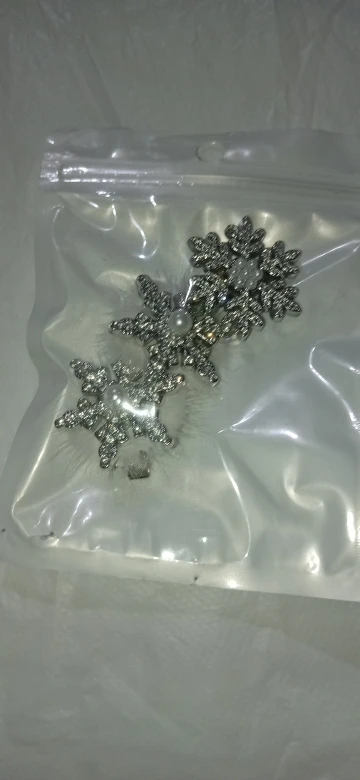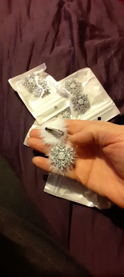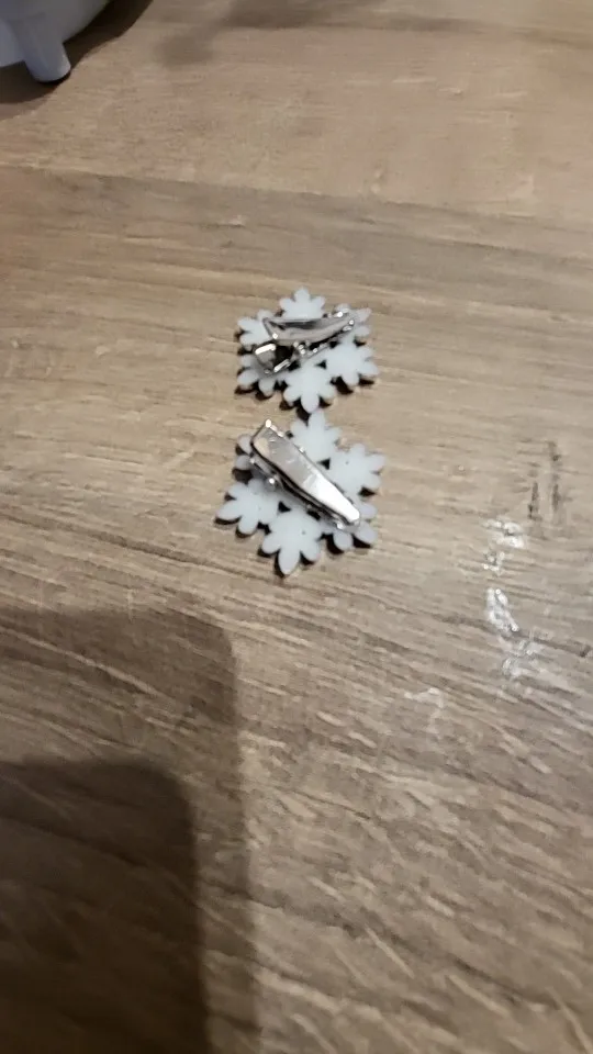 épingles à cheveux mignonnes, légères, très beaux flocons de neige brillants, elles sont en plastique dur, fermoir crocodile, j’ai tout aimé.