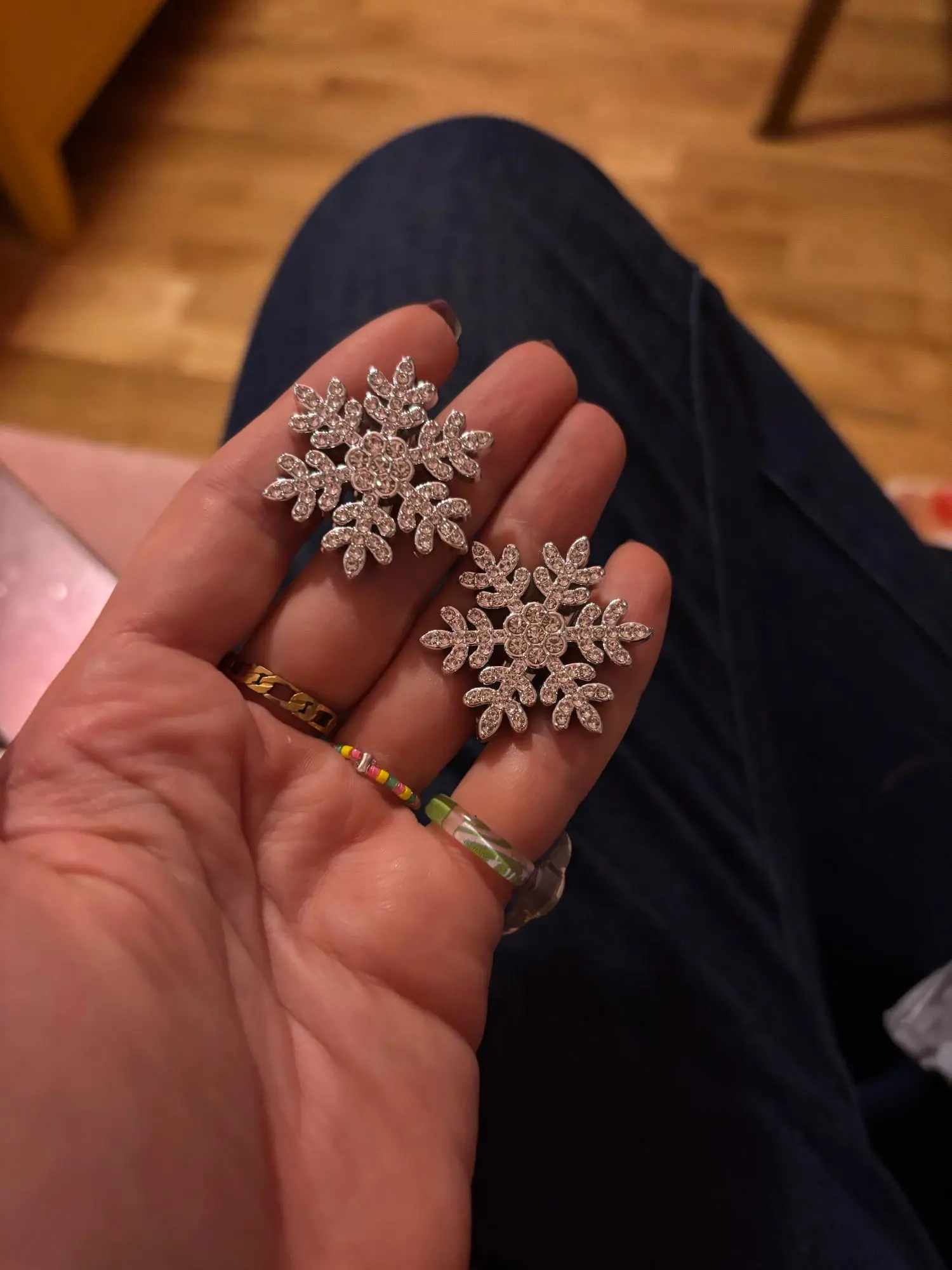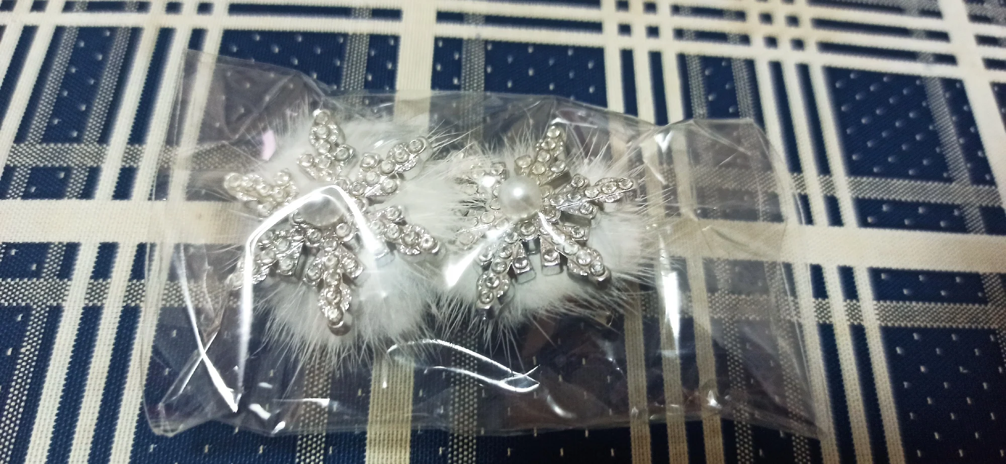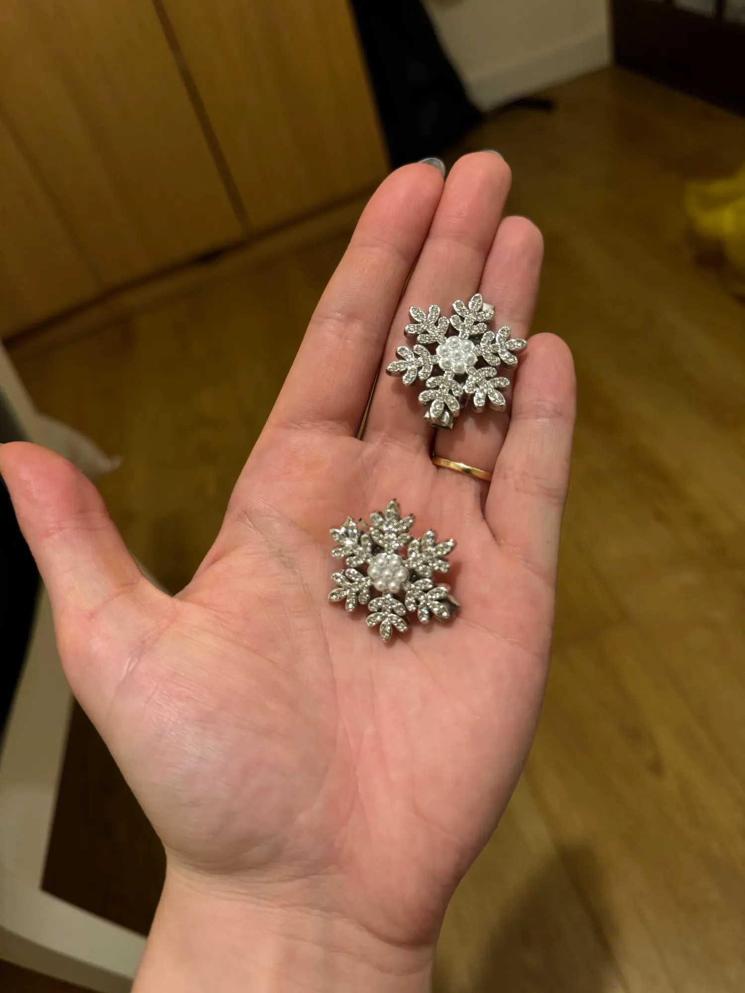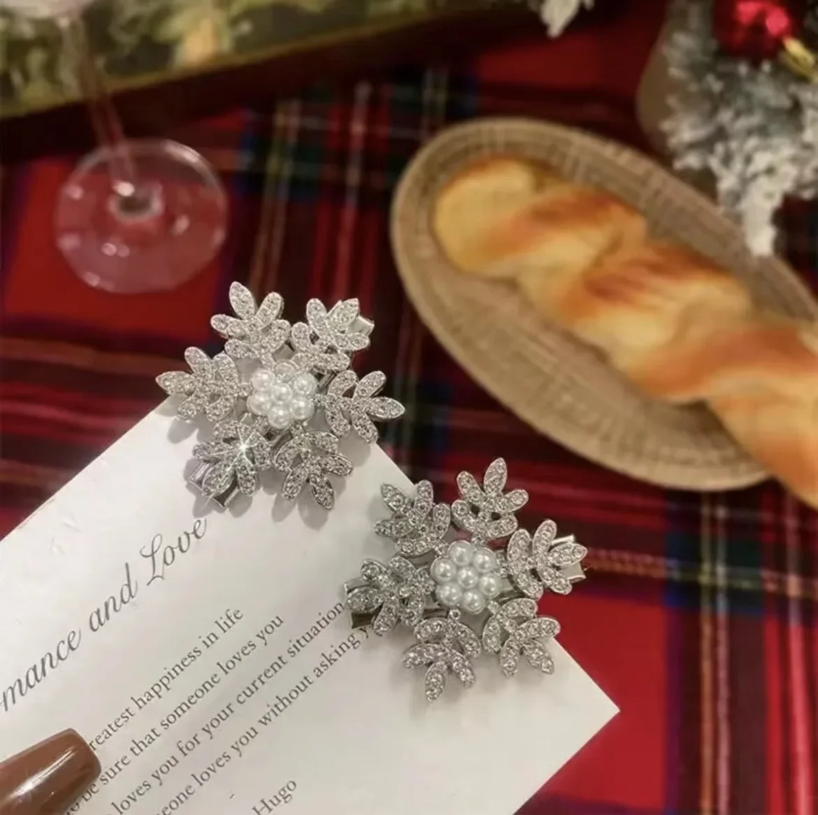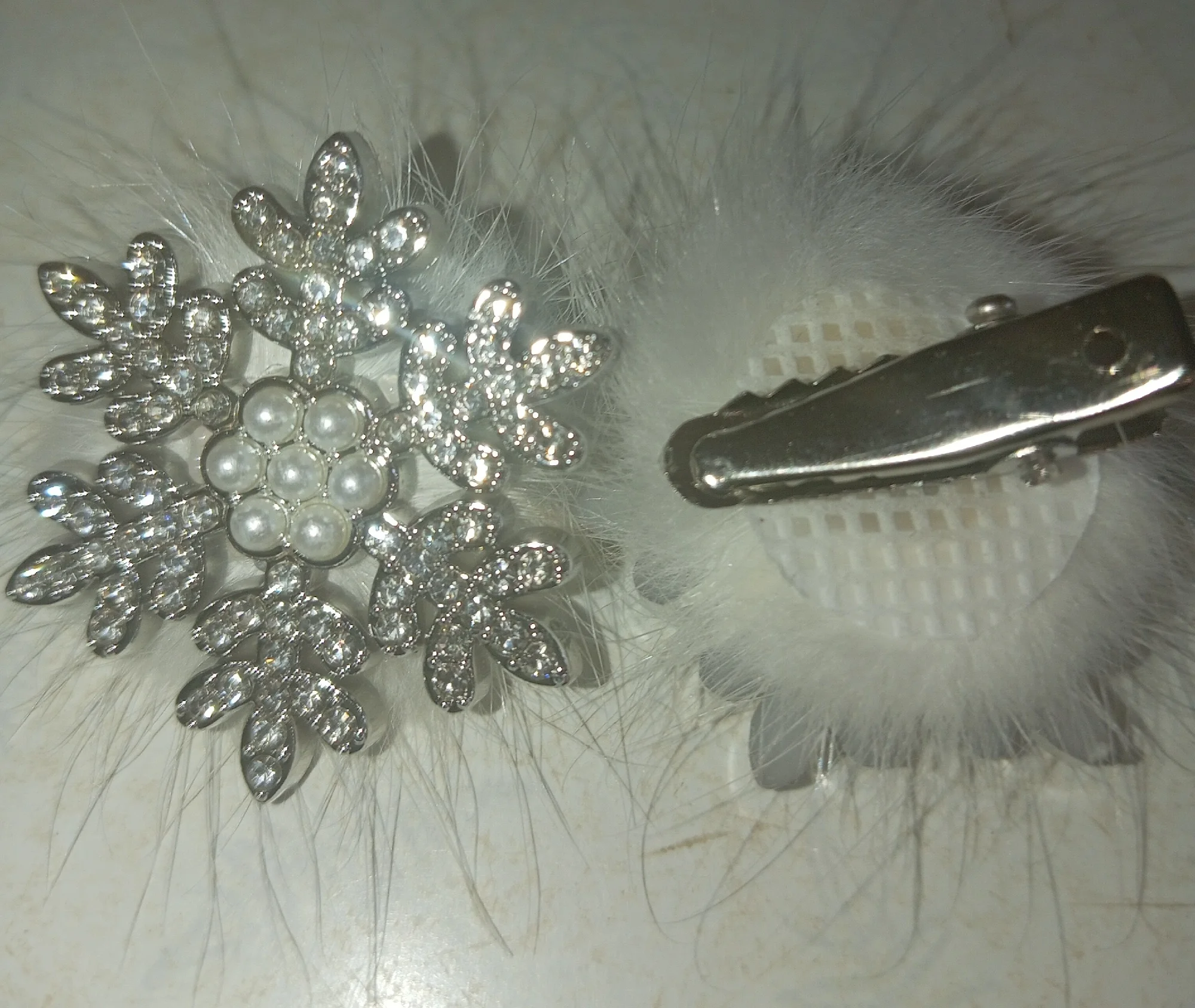 épingles à cheveux mignonnes, légères, très beaux flocons de neige brillants, elles sont en plastique dur, fermoir crocodile, j’ai tout aimé.