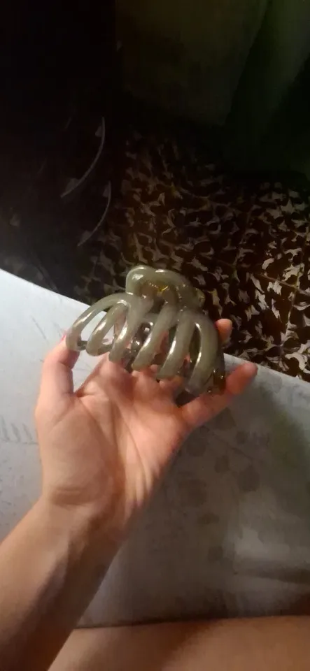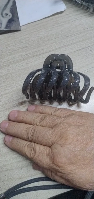 Crabe classique, sur cheveux longs tient très bien, très large pour les cheveux, mais sur la tête n’est pas lourd et ne pince pas, bonne forme très, très, très recommandé