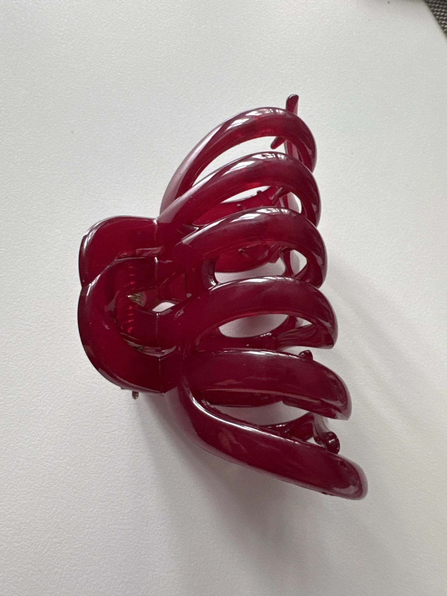 La pince est belle et grande mais pas trop lourde. Elle maintient tous mes cheveux en haut ou tirés vers l’arrière. Jolie couleur au choix et semble durable avec un grand ressort.