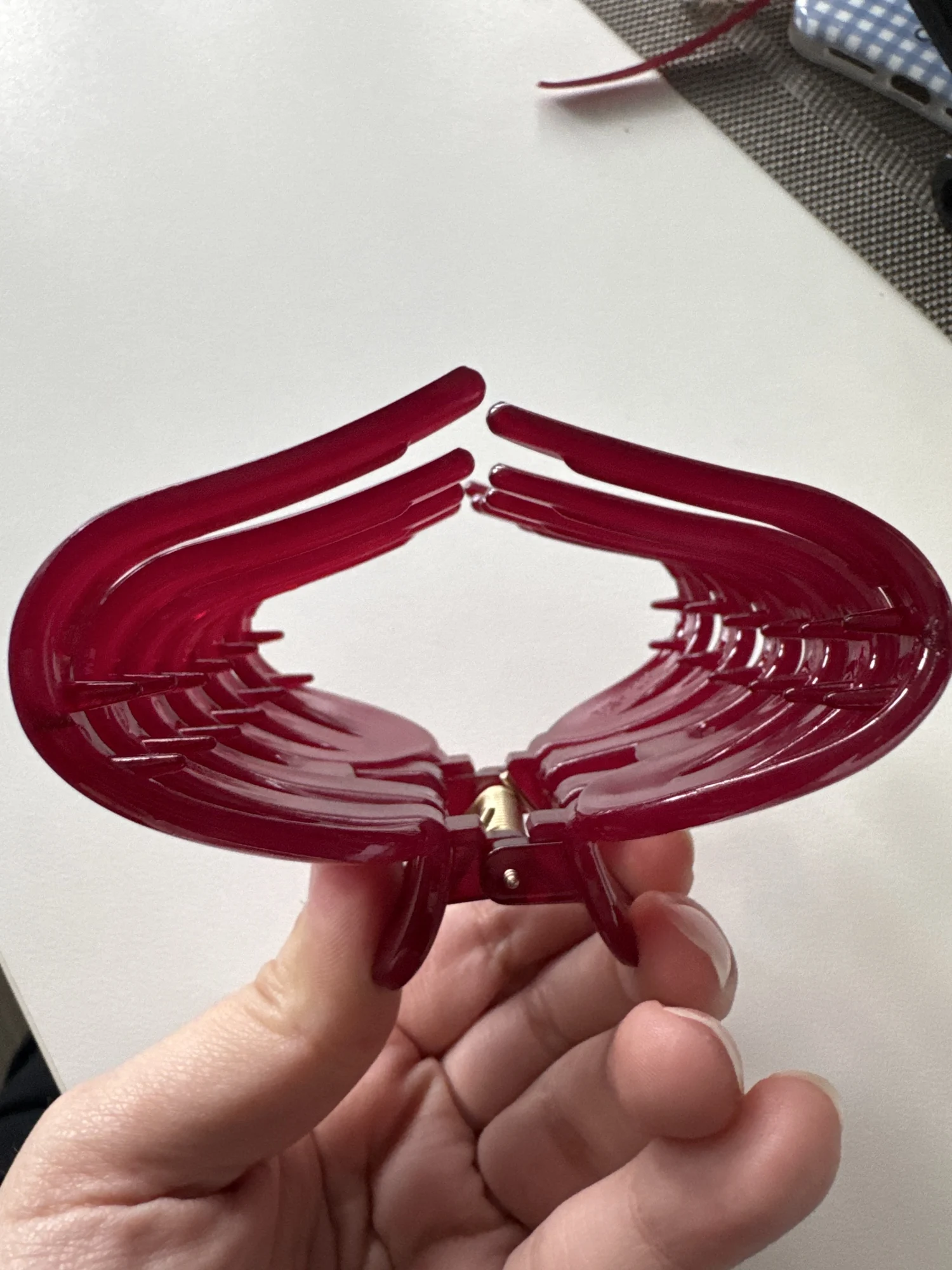 Je suis ravie 🥰 J’ai reçu la commande très rapidement, la barrette est super confortable, tient bien les cheveux et ne fait pas pression sur la tête. Parfait pour un volume épais ! Merci 😊