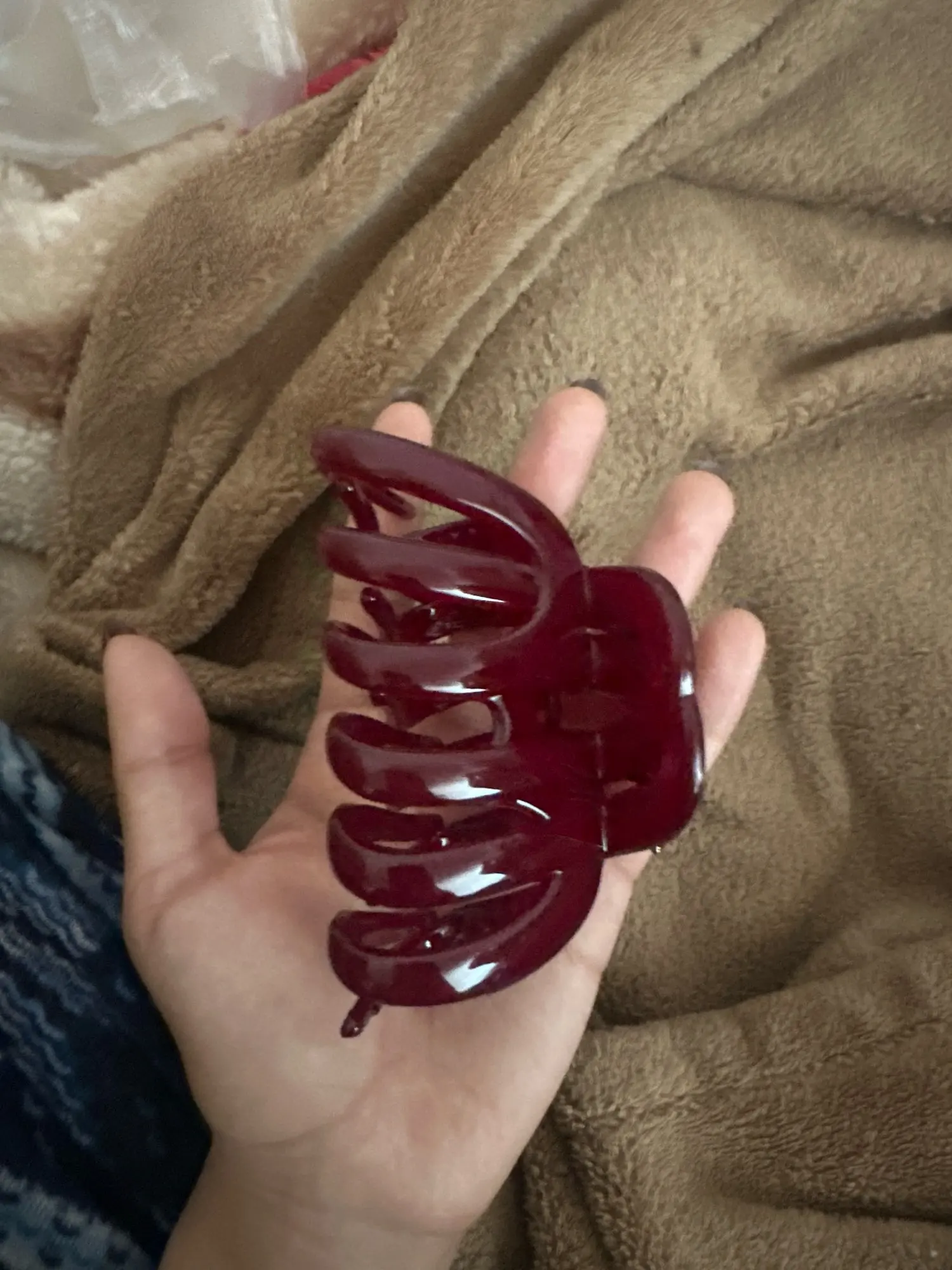 le produit est vraiment de bonne qualité, il est assez grand mais j’ai de gros cheveux bouclés donc c’est bien ! c’est vraiment bien, c’est solide aussi et c’est élégant, et le rouge est absolument STUNNING ! !!