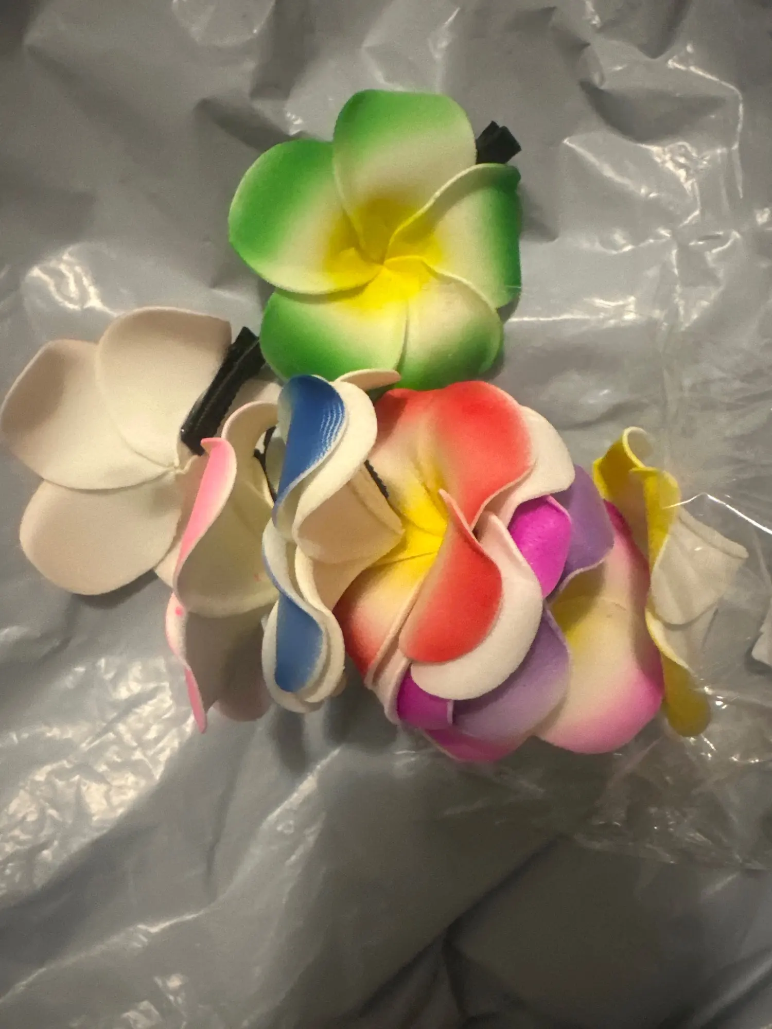 Adoptez le style tropical avec cette pince fleur de Frangipanier en mousse, parfaite pour la plage.